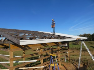 This was a week when the stars aligned for the roof work to get done. The weather was perfect, there were two of us available for two full days of work and with some pushing, shoving and occasional burst of profanity, we got the long side of the roof up.