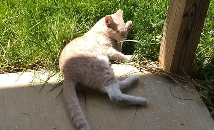We got a couple of kittens a while back, in the hopes that we could raise them and convince them to live out on the property giving us some free, or almost free, pest control. Last year we had a major issue with rats that were living under our rabbits and getting into their food, which is the biggest reason we’ve pared down our animals, for now, to the original breeding stock.