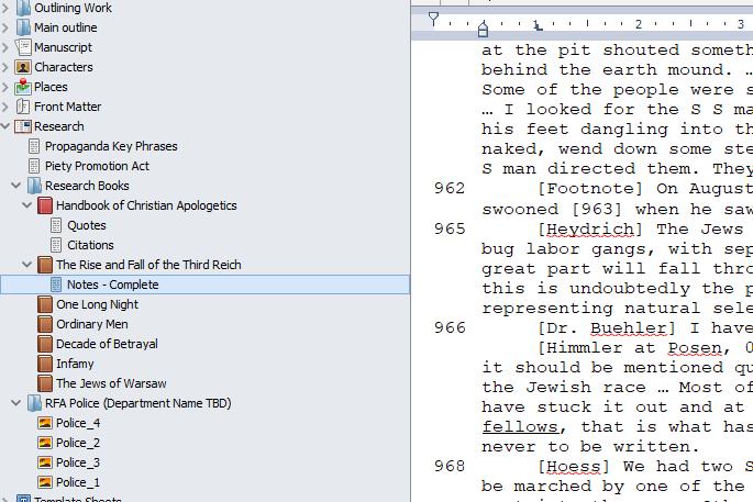 But it’s resulted in my trying too many different approaches to making notes. The absolute worst was writing them in a separate composition book, thinking numbering them and including page references would help. It doesn’t. I never made it back to that book because I knew what a headache it was going to be. It still is going to be that headache, but at least I have an ideal process, a state that I want the research material to be in.