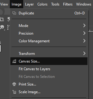 Next we’ll need to crop the image to the correct size. We’ll use the Canvas Size to do this. That’s on the Image menu, again.