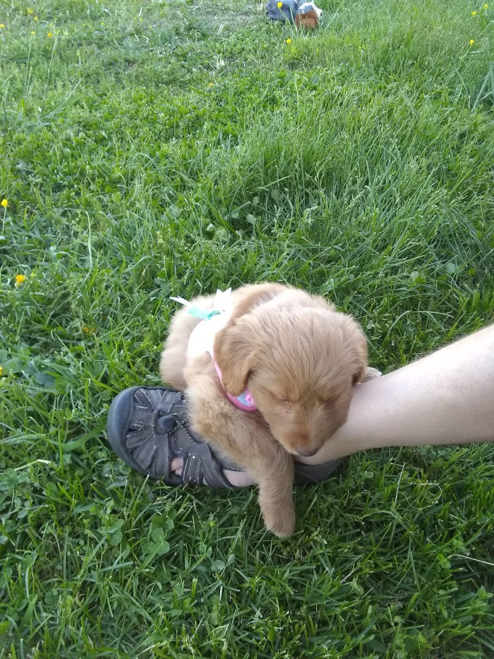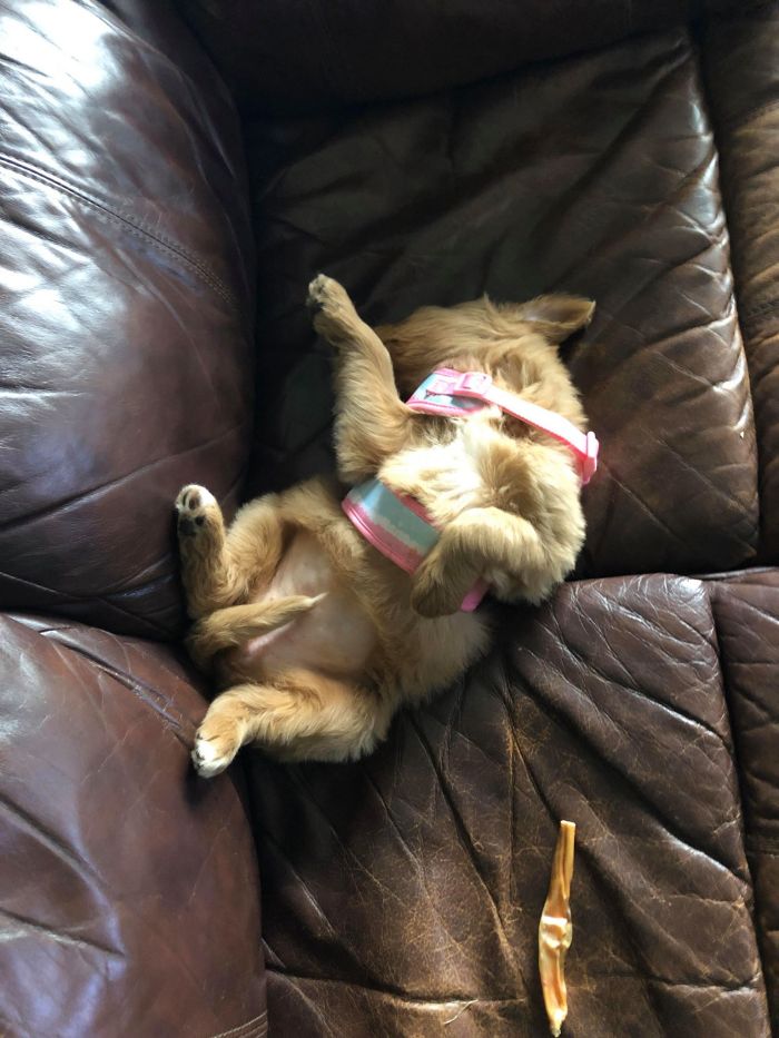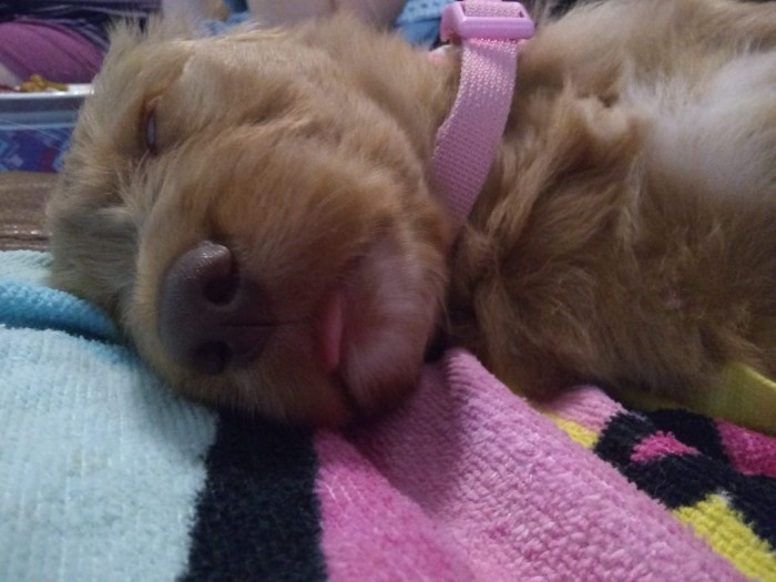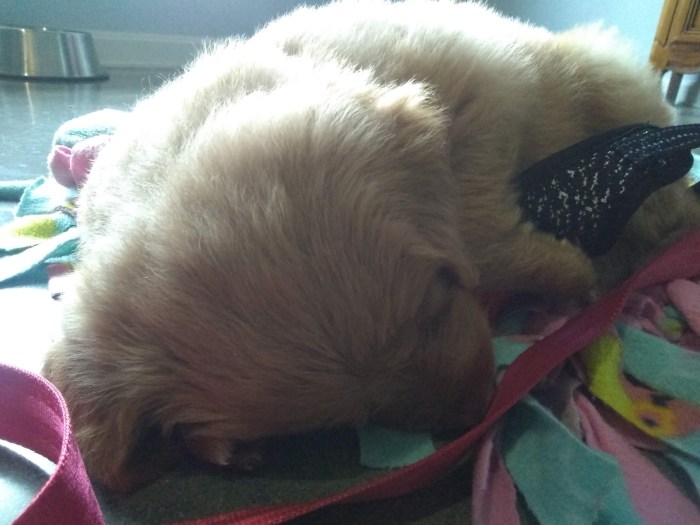 Hazel Pictures of our Springer Spaniel – Labradoodle cross. A fluffy bundle of frustration and sleep depriving bitiness. Hazel, doing what she does best. Sleeping on her enormous new bed. Daddy’s foot makes a comfy pillow. Snuggled up to cheesy feet. Such a lack of dignity. Dreaming of feeding from her mama. Hoggin’ all the sleep for herself. Growing up fast and out for a walk. Share this: Click to share on X (Opens in new window) X Click to share on Facebook (Opens in new window) Facebook Like Loading...